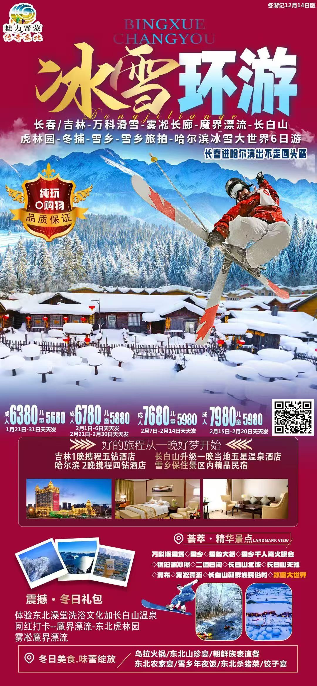 冬游景点 | 炙手可热的雪季景点:吉林雾凇、万科滑雪、长白山天池、温泉、雾凇漂流、镜泊湖冰瀑、中国雪乡、哈尔滨冰雪大世界 | |||||||||||||||