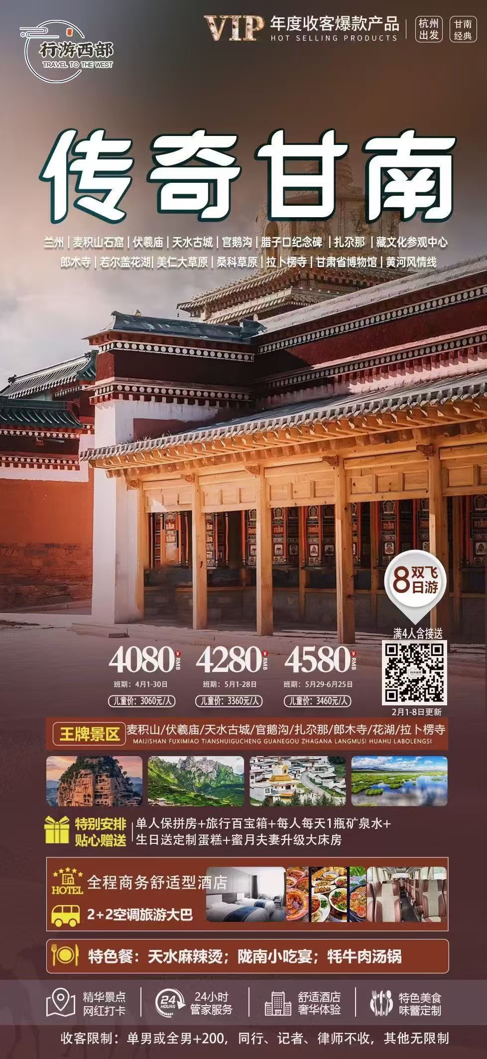根据航班/动车/火车/高铁/动车时间送客人抵达兰州中川机场/兰州火车站/兰州西站后,抵达机场/火车/动车/高铁站后自行办理,如若是当天晚班返程,上午可自行安排行程自由活动。