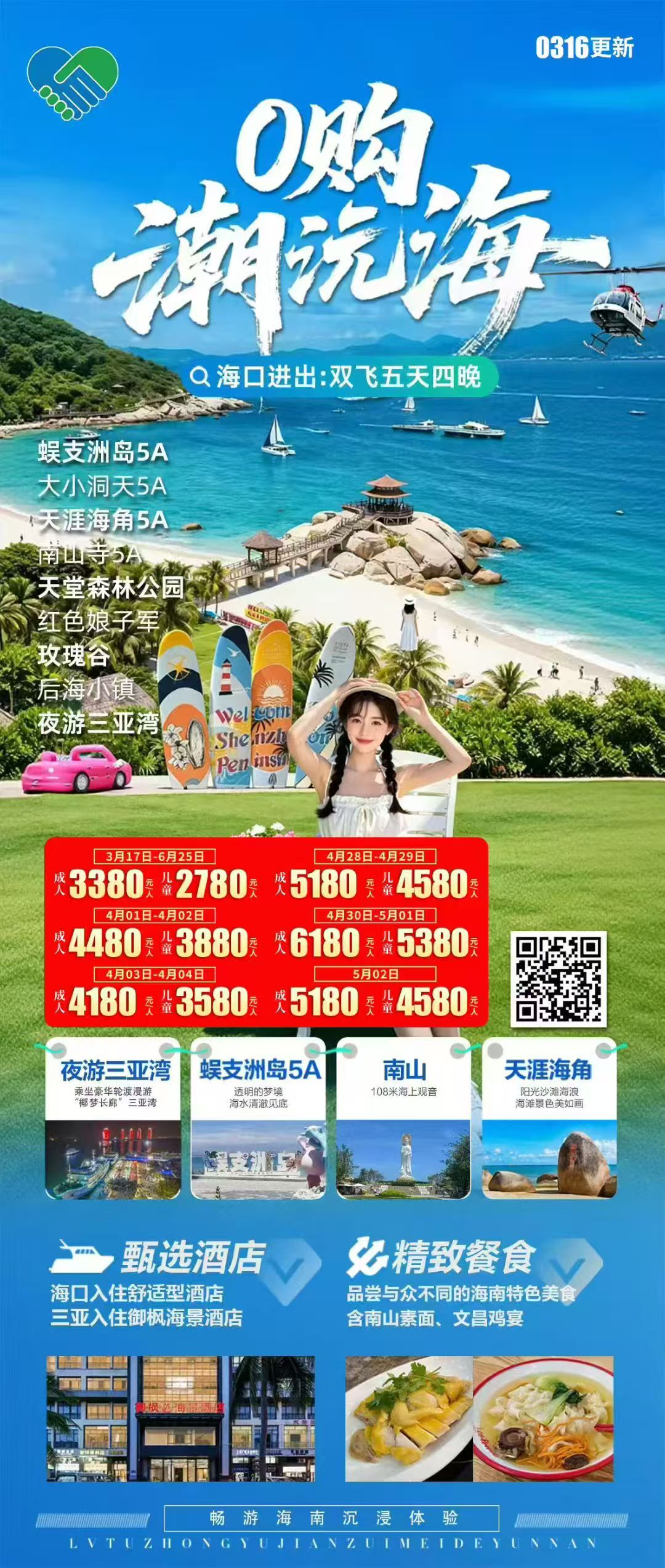 行程特色:0购纯净旅行,热门景区一网打尽,铭记最美时光。饱览迷人风光,深度感受海南的热情与美丽;