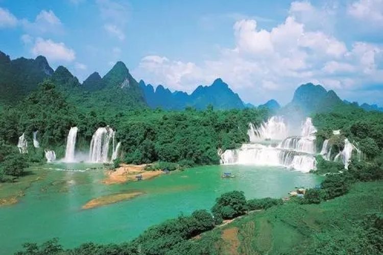 午餐后乘车前往国家特级景点--【德天跨国大瀑布风景区】(含景区环保车,游览时间不少于120分钟),徒步进入景区游览亚洲第一大、世界第四大跨国瀑布,瀑布由【中国德天瀑布】和【越南板约瀑布】相连构成,横跨中越两国边境,宽208米,落差70米,纵深60米,三级跌落,雄奇壮阔!瀑布从高峻的石崖上、翠绿的石岩中倾泄而出,形成三层自然瀑布,遥望似素缟垂天, 近观则白雾升腾、飞珠溅玉,气势磅礴,游览德天景区,还可在国界碑前留影,德天寺祈福许愿......