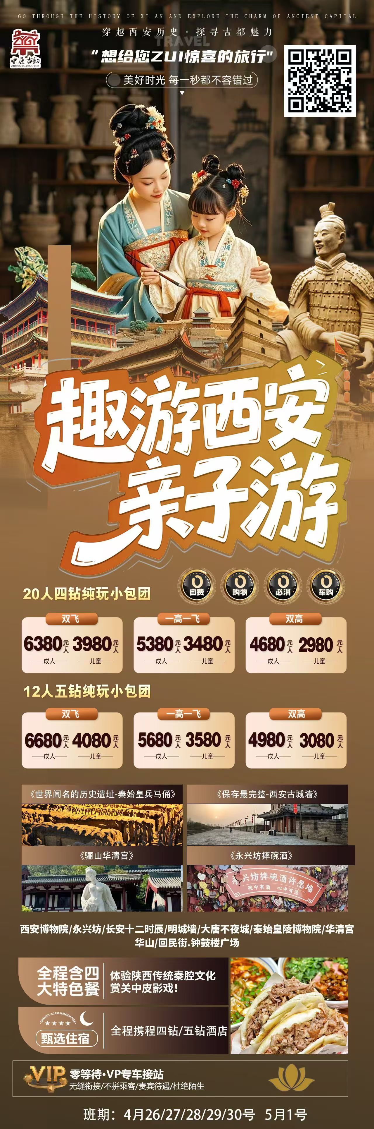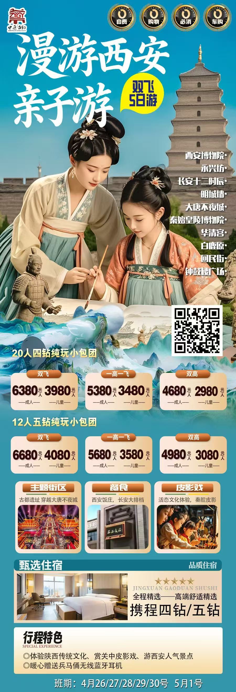 五一! 浙江独立成团,四钻,五钻住宿,西安5日游